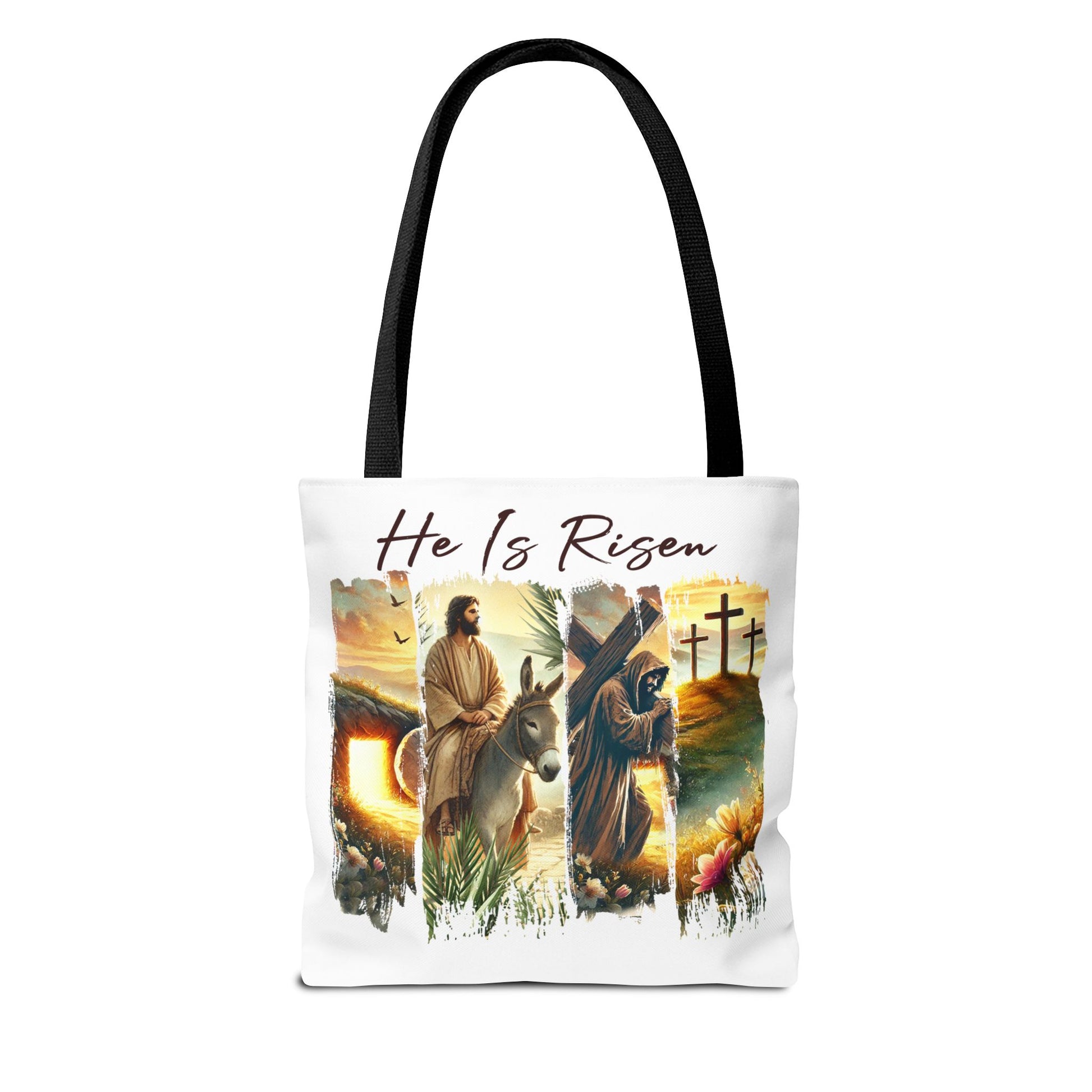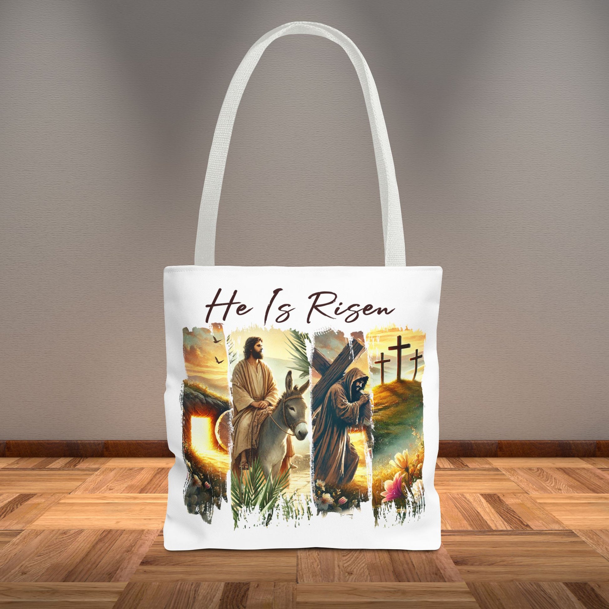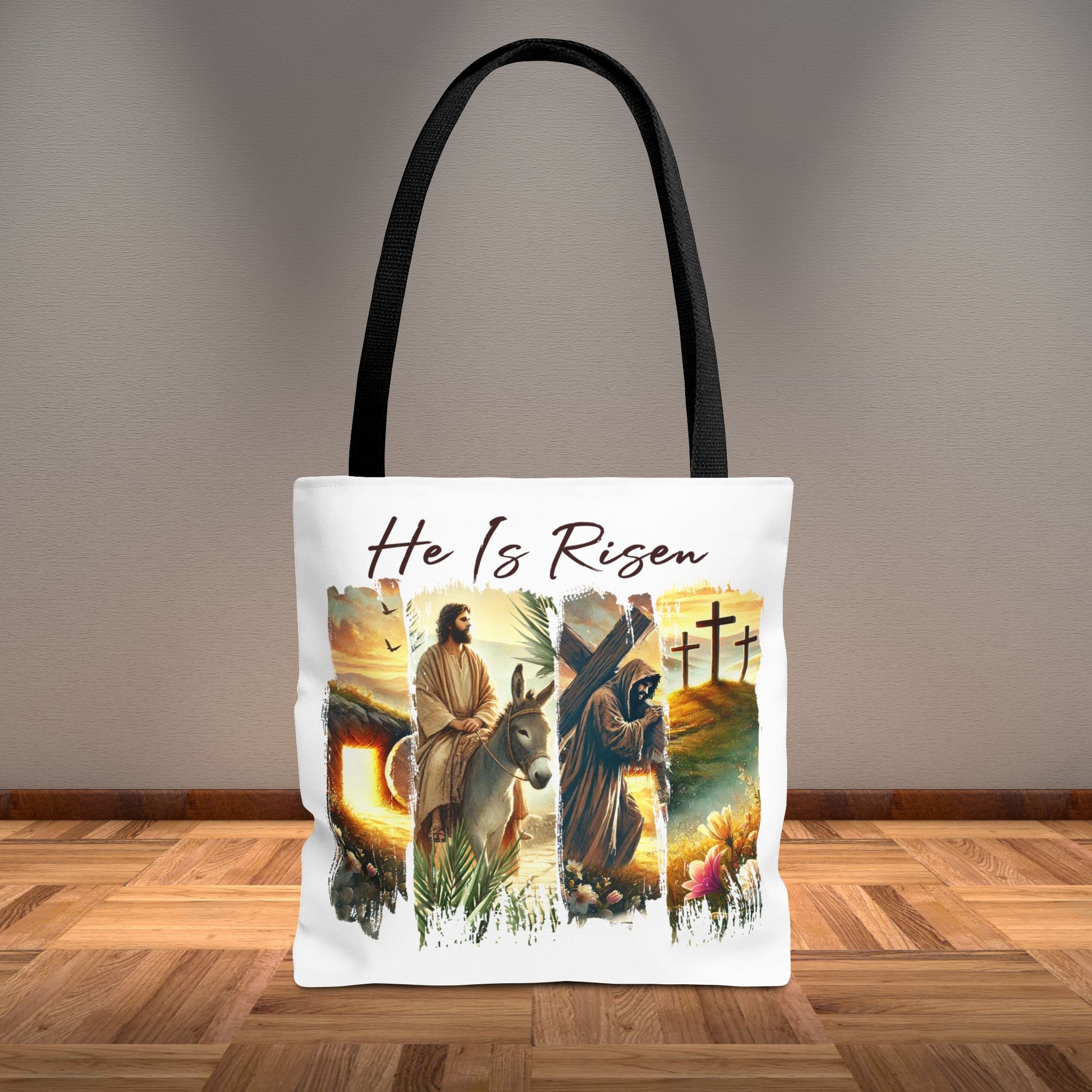 This He Is Risen Christian Tote Bag is perfect for carrying your essentials while spreading a message of faith and hope. It is ideal for Christians looking to incorporate their beliefs into their everyday life or as a gift for Easter and religious celebrations