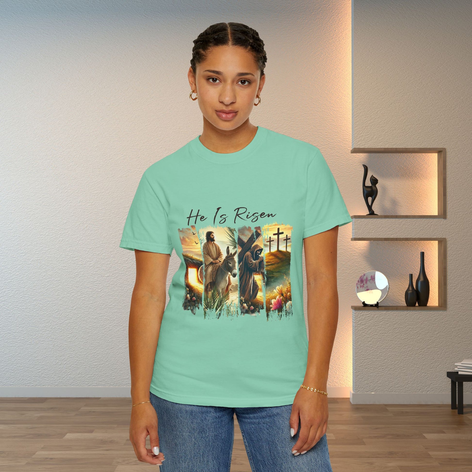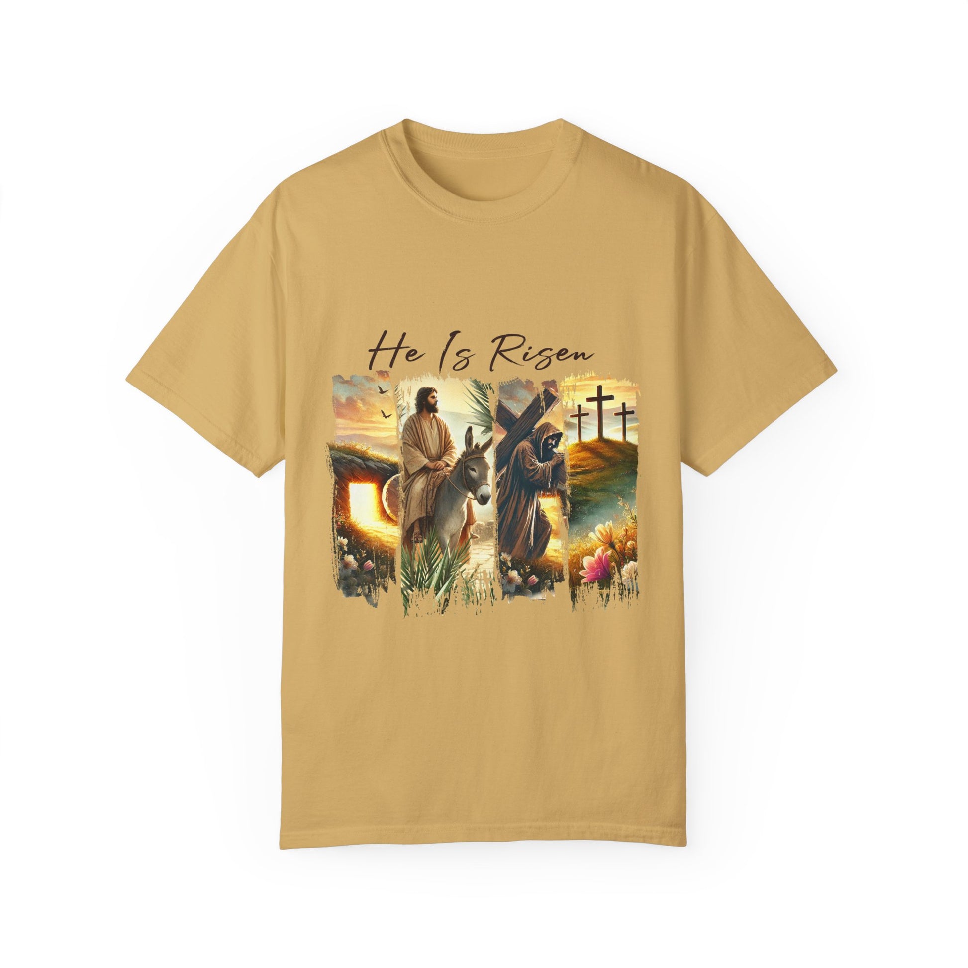 Elevate your casual wardrobe with this Unisex Garment-Dyed T-shirt, designed to bring a touch of comfort and style to your everyday look. The relaxed fit and classic crew neckline make it perfect for a laid-back day out or a cozy evening in. Made from soft, high-quality, 100% ring-spun US cotton, this shirt ensures a comfortable wear that you'll love. With its vibrant color options and unique design, it's perfect for holidays, celebrations, or just casual wear. Ideal for those who appreciate sustainable fashion and chic design, this T-shirt speaks to individuals who want to express their beliefs and values effortlessly. Whether worn during Easter festivities or as a daily reminder of faith, this piece is versatile enough for any occasion.