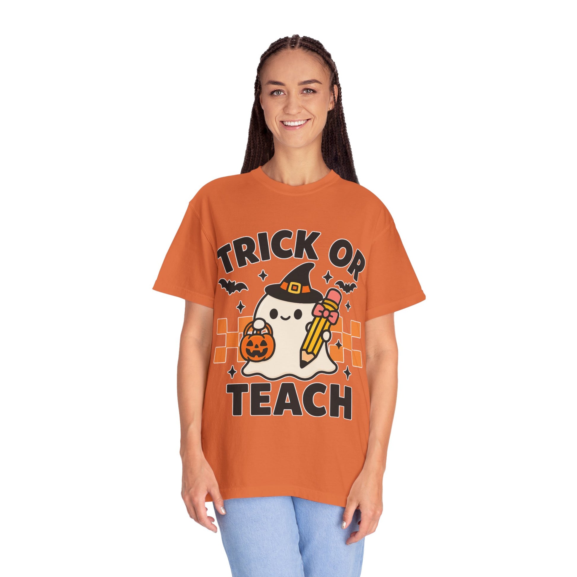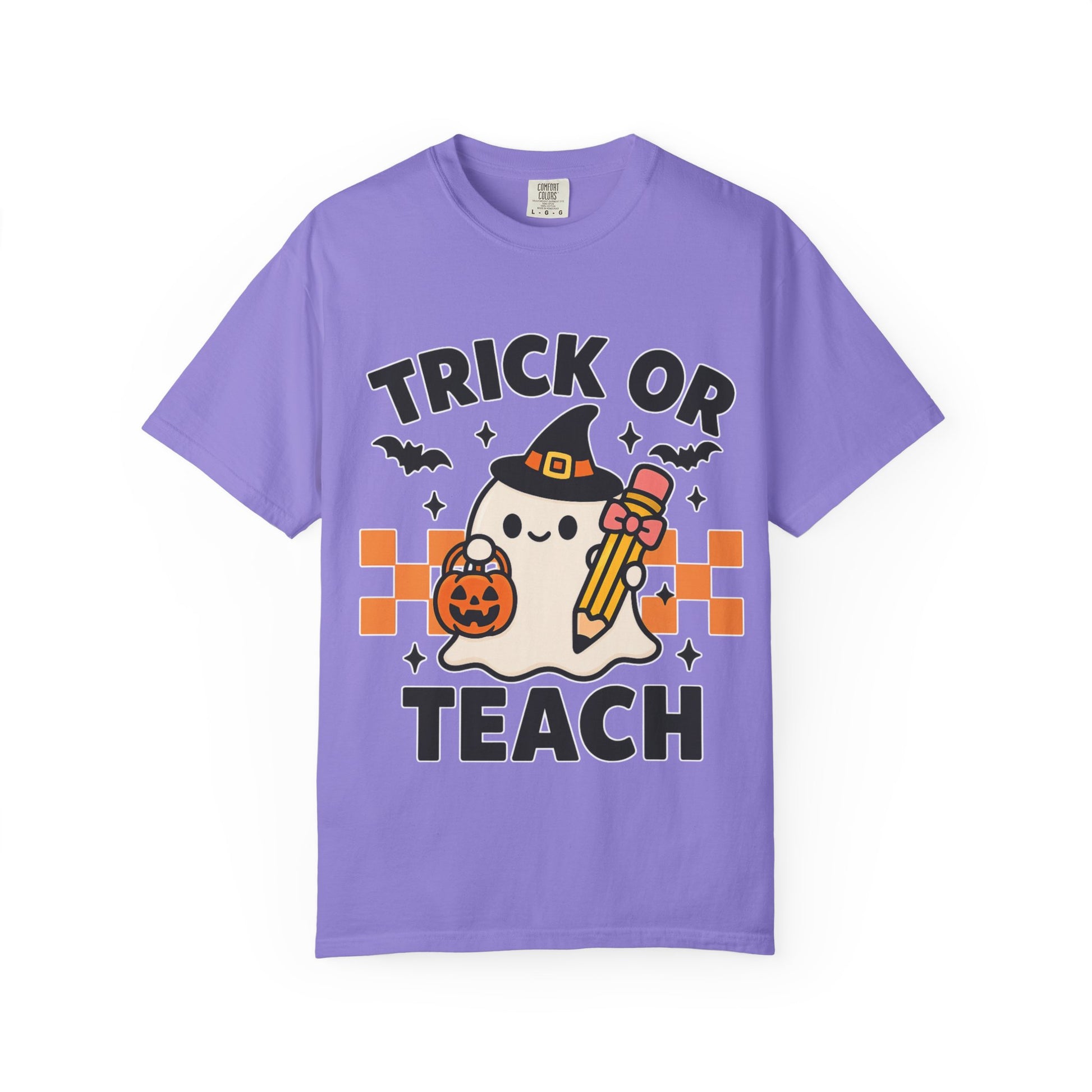 Trick or Teach Teacher Halloween Shirt β Cute Ghost Graphic Tee, Fall Classroom Costume Top, Fun Spooky Teacher Gift